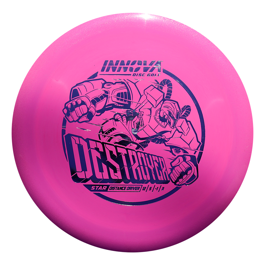 The Destroyer is a very fast stable long distance driver. This disc is much like a faster Wraith, but with a little more high and low speed stability. Great disc for sidearm throwers and those with lots of power. Can handle headwinds and throws with off axis torque. Not suggested for beginning players.