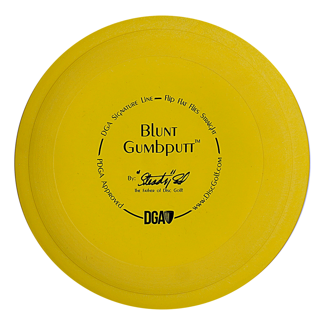 The Signature Line Blunt Gumbputt disc is unlike any other disc golf disc in the industry. This disc has a blunt edge and is both an excellent putt and approach disc. The Signature Line Blunt Gumbputt is a great putter and will wrap its way around any set of chains. But, unlike all other putters out there, the Blunt Gumbputt will stick when it hits the ground if you just so happen to miss.