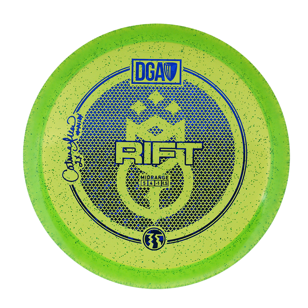 The DGA Rift is an amazing point and shoot straight-flying midrange disc with favorable glide. This midrange can be used in many different situations and really shines for straight tunnel shots, slight turnover lines, and slowly fading hyzers. Grab a few, because you will be reaching for the Rift time and time again!