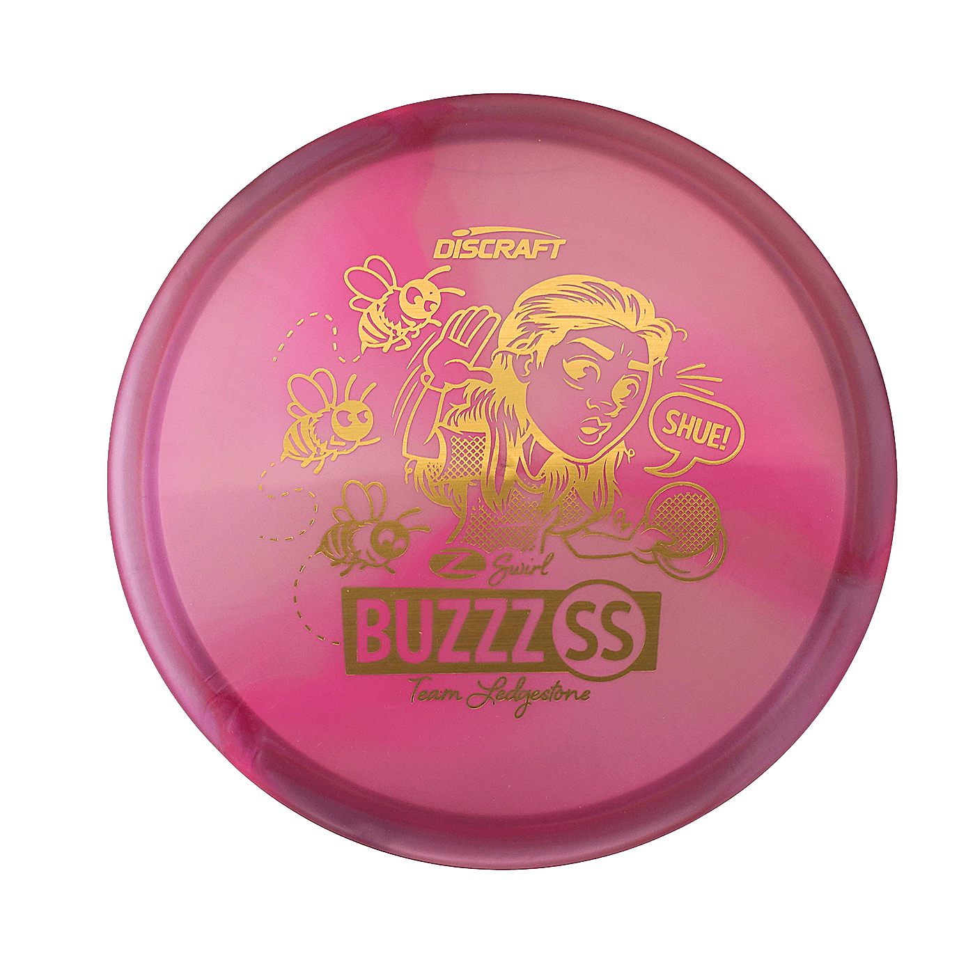 This run was in Discraft's Z Swirl plastic. These feature a 'Shue!' stamp and proceeds support Paige Shue's tour.