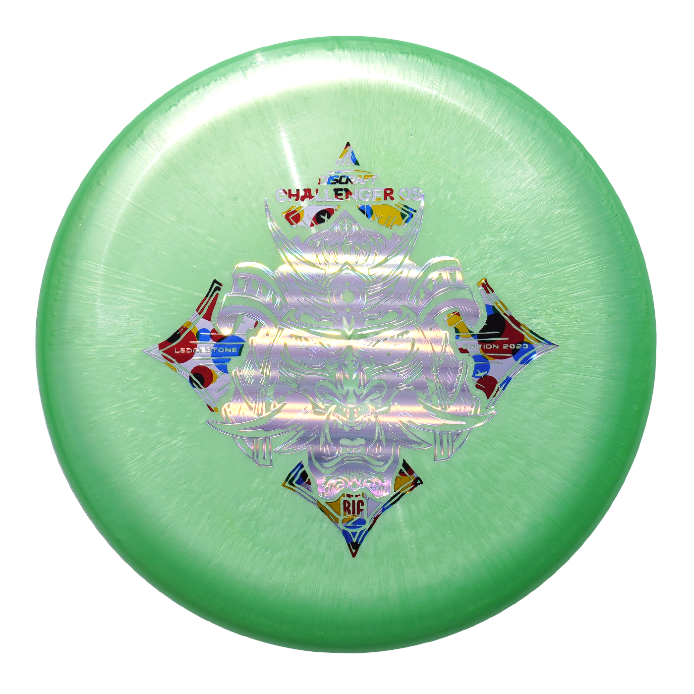 The Challenger OS is a beaded, overstable putter with a deep rim. The OS’s flatter flight plate adds to the stability of the regular Challenger mold. Even as a 2-speed disc, the Challenger OS is known for its resistance to high-speed turn, filling the gap between Ringers/Zones and the rest of Discraft’s putter lineup. The tackiness of the Big Z plastic allows players to grip with confidence while the durability ensures a consistent flight long into the disc’s life. Arguably the most unique stamp of the year, this Challenger OS run will feature a 2-color, Japanese-inspired design with a depiction of the fierce, yet wise, Hannya samurai mask. Only 2200 of these were made.