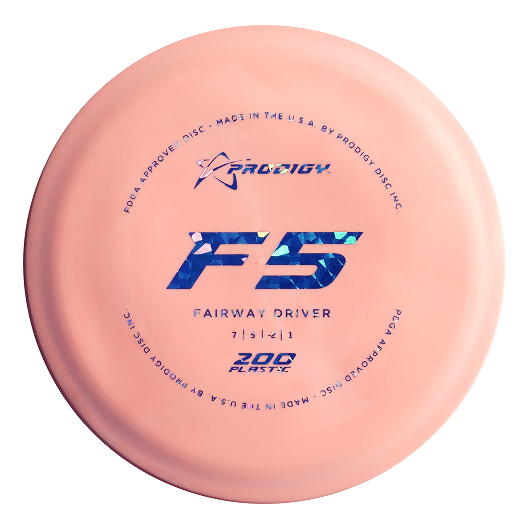 The Prodigy Disc F5 is a high speed, stable to under stable fairway driver. It is designed for all skill levels and flies extremely far and incredibly straight. The F5 will turn up slightly when thrown hard it will go into a long glide before finishing gently to the stable side.
