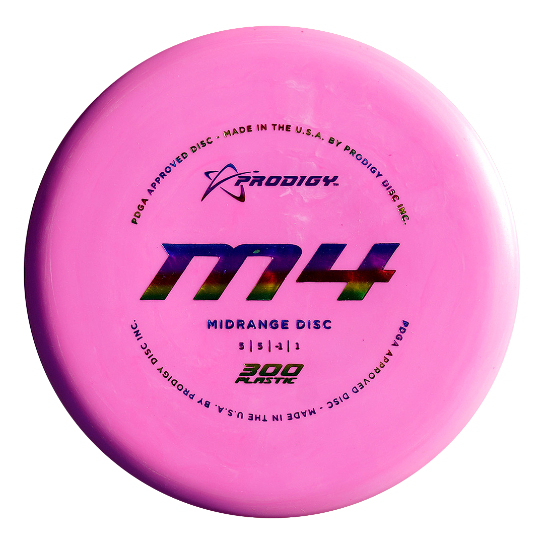The Prodigy Disc M4 is an extremely reliable understable midrange disc. It is designed for all players and flies extremely far for a midrange. The M4 will turn up when thrown hard and will then have an extra long glide and a soft straight finish.