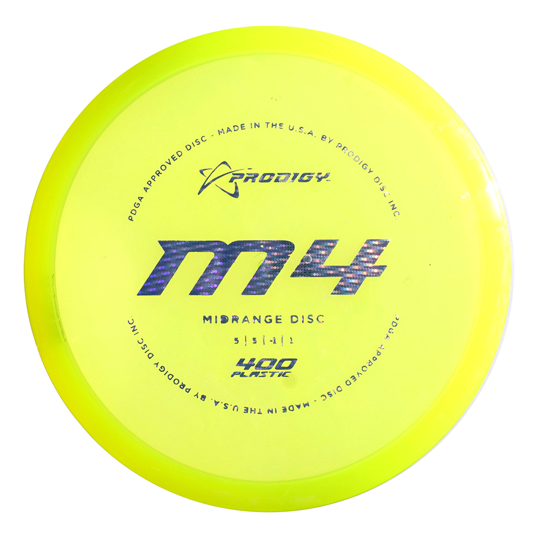 The Prodigy Disc M4 is an extremely reliable understable midrange disc. It is designed for all players and flies extremely far for a midrange. The M4 will turn up when thrown hard and will then have an extra long glide and a soft straight finish.