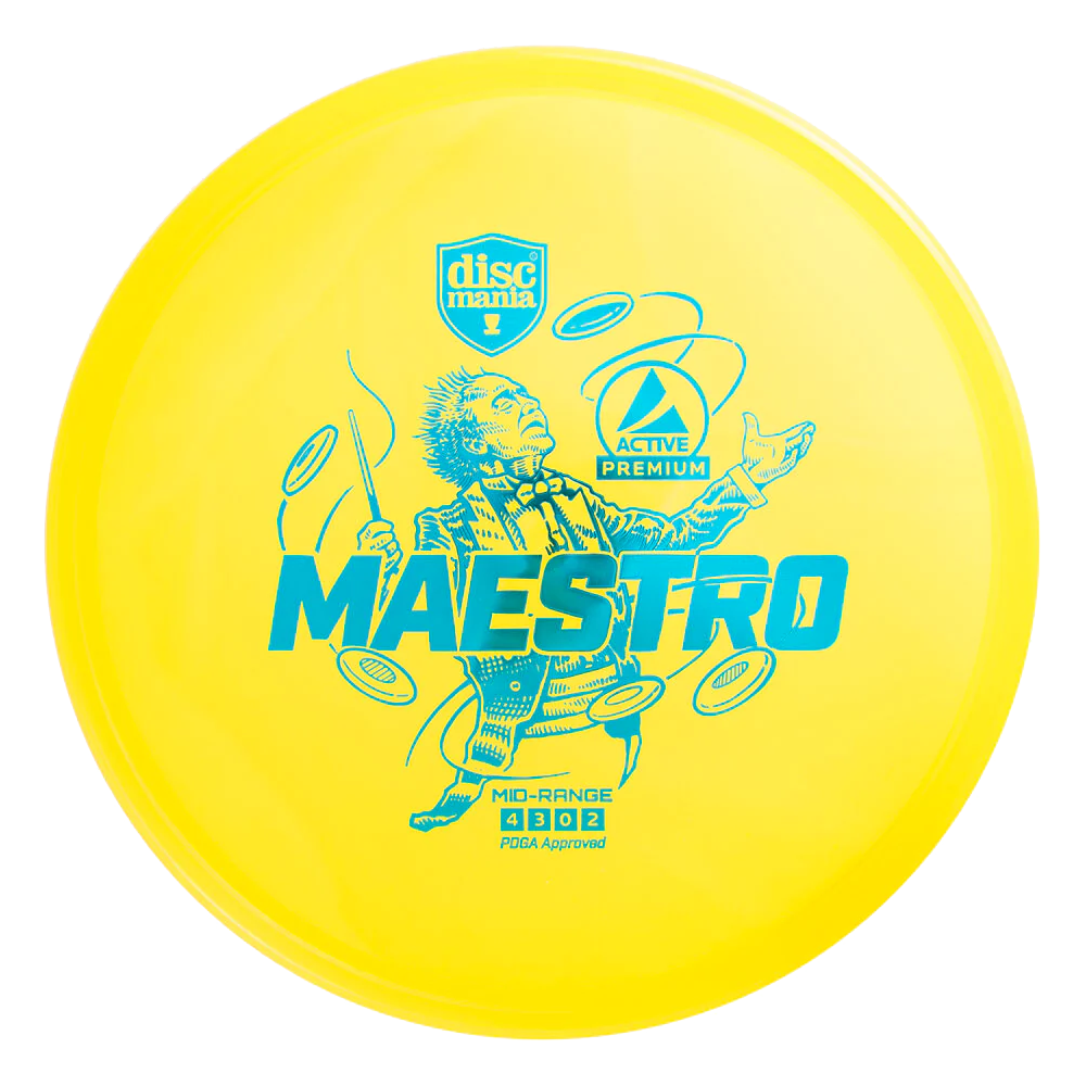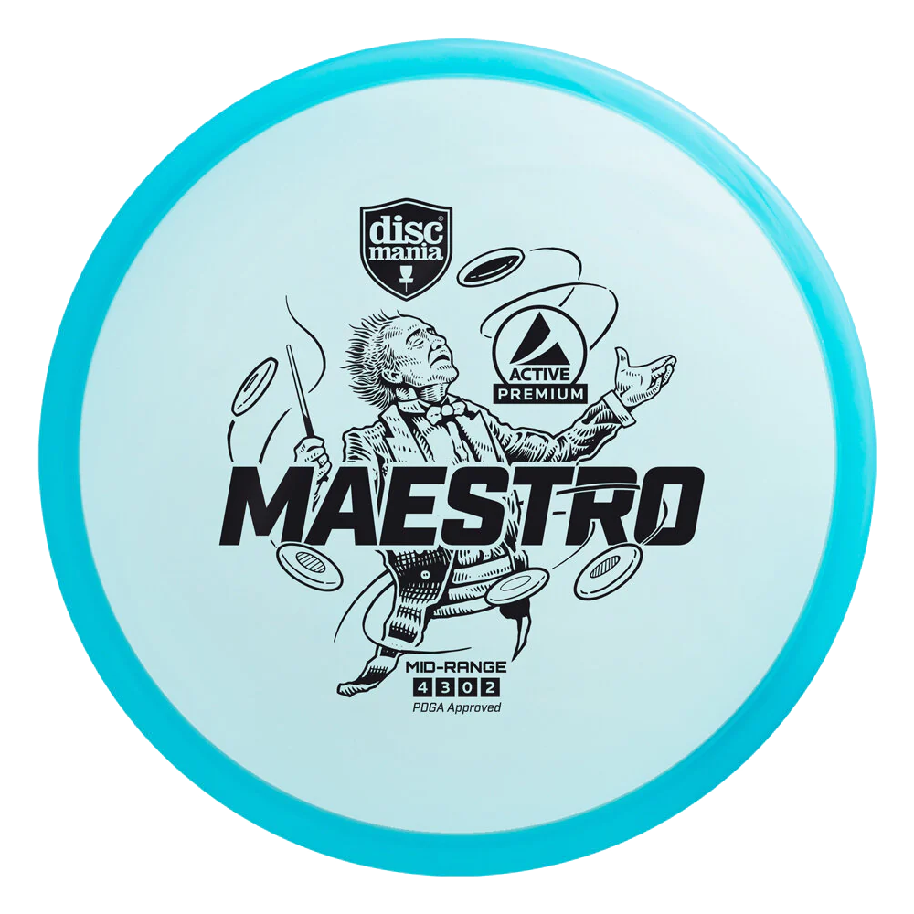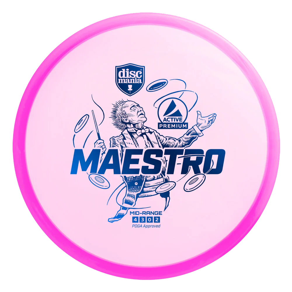 The Maestro is the brand new midrange featured in Discmania’s Active lineup. The Maestro is a low profile midrange with a bead that helps flight as well as making sure the disc releases smooth from the hand every time. This midrange has a straight flight with a slight slow speed fade making accurate approach shots a regular part of your game. While most midranges have a larger diameter, the Maestro features the same diameter as drivers and putters making this disc fit more comfortably in the hand.