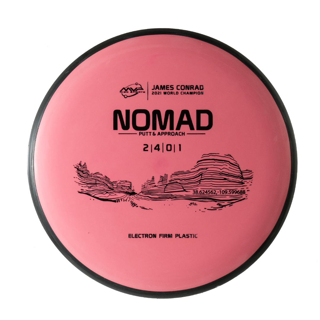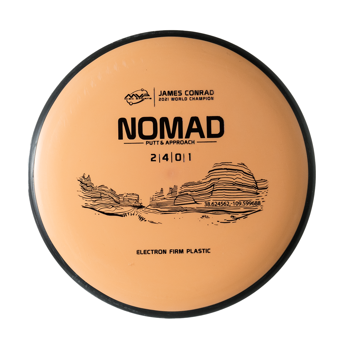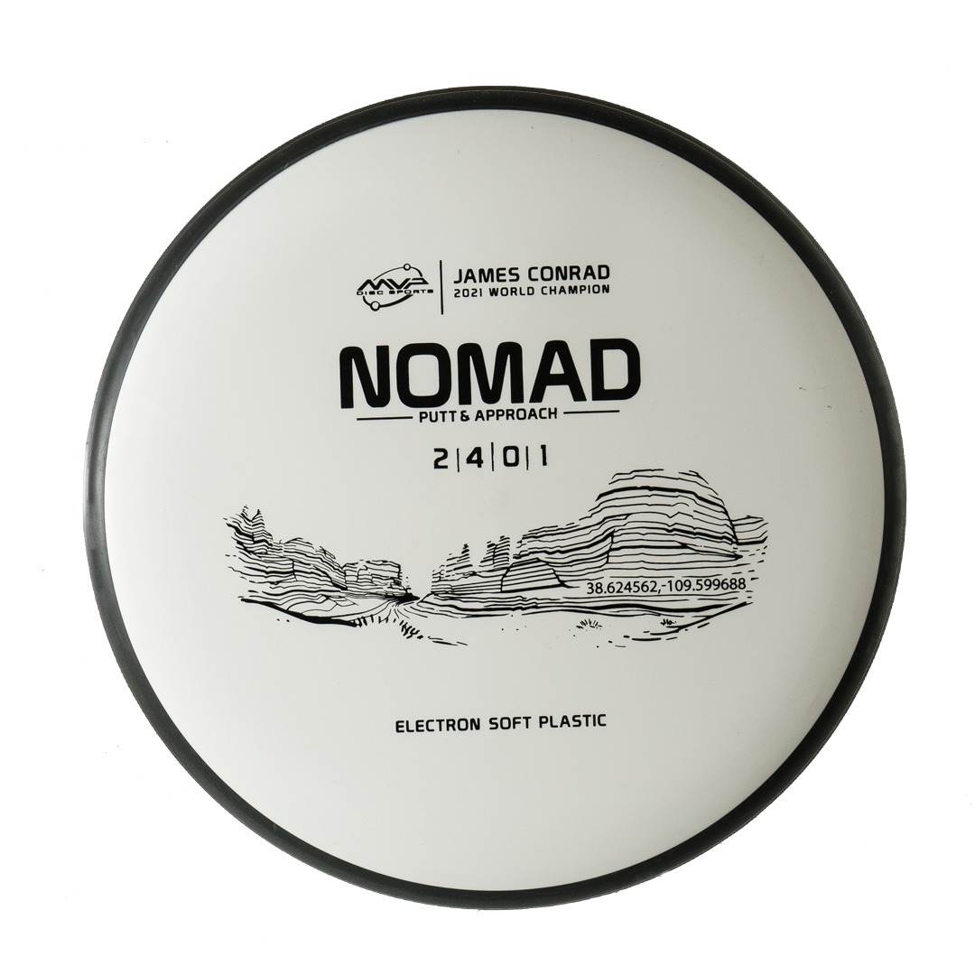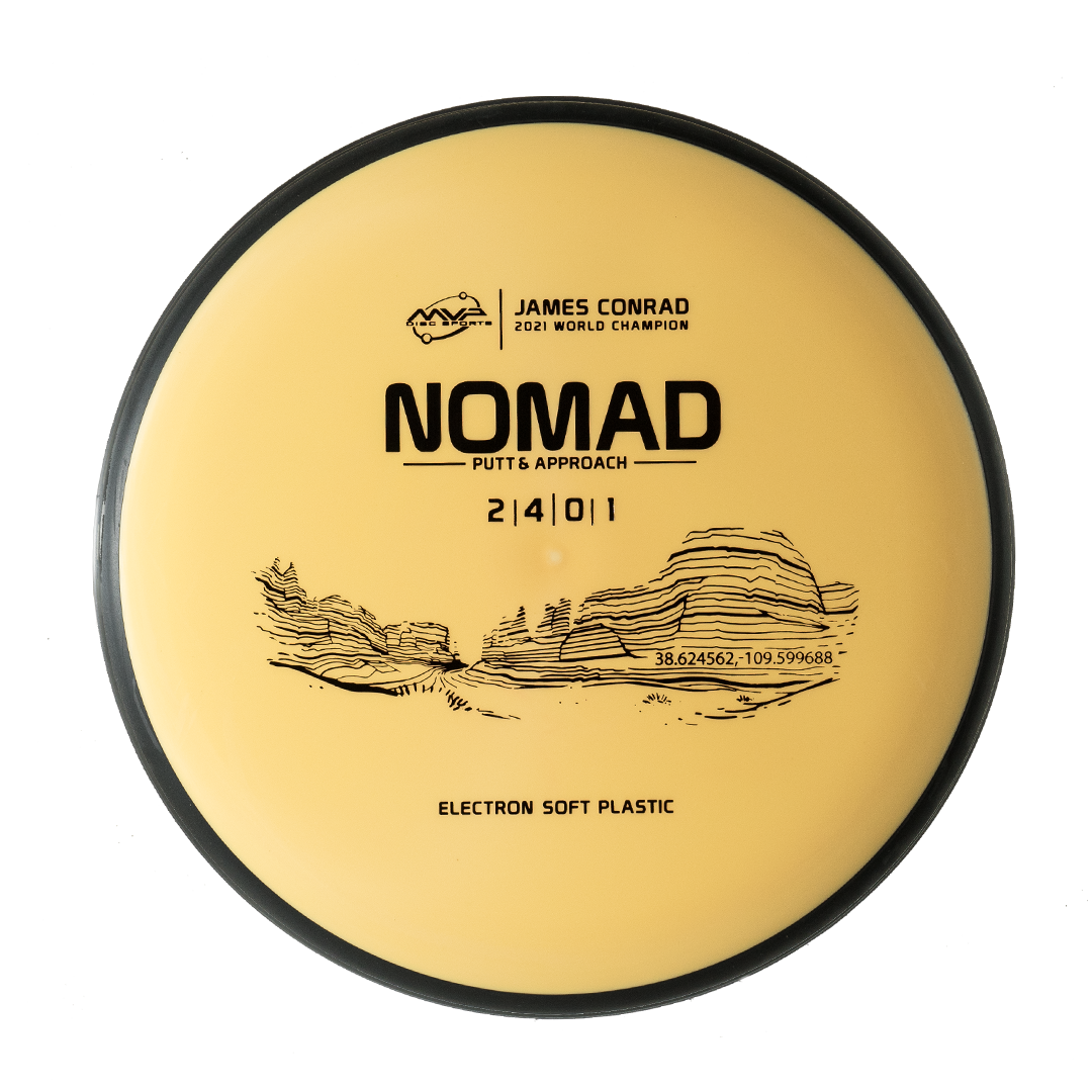 Designed by the World Champion himself — the Nomad has everything James Conrad desires in a putter. From the depth and shoulder height, all the way down to the size of the small bead — the Nomad is James’ vision of an ideal putter. Expect a neutral flight inside the Circle, with some fade kicking in at Circle 2 — making the Nomad great at holding anhyzer or hyzer angles when need be. Off the tee, the Nomad’s straight-stable flight will let throwers of all power levels experience confident, straight lines with just enough glide to stick under the basket — not blow past it.