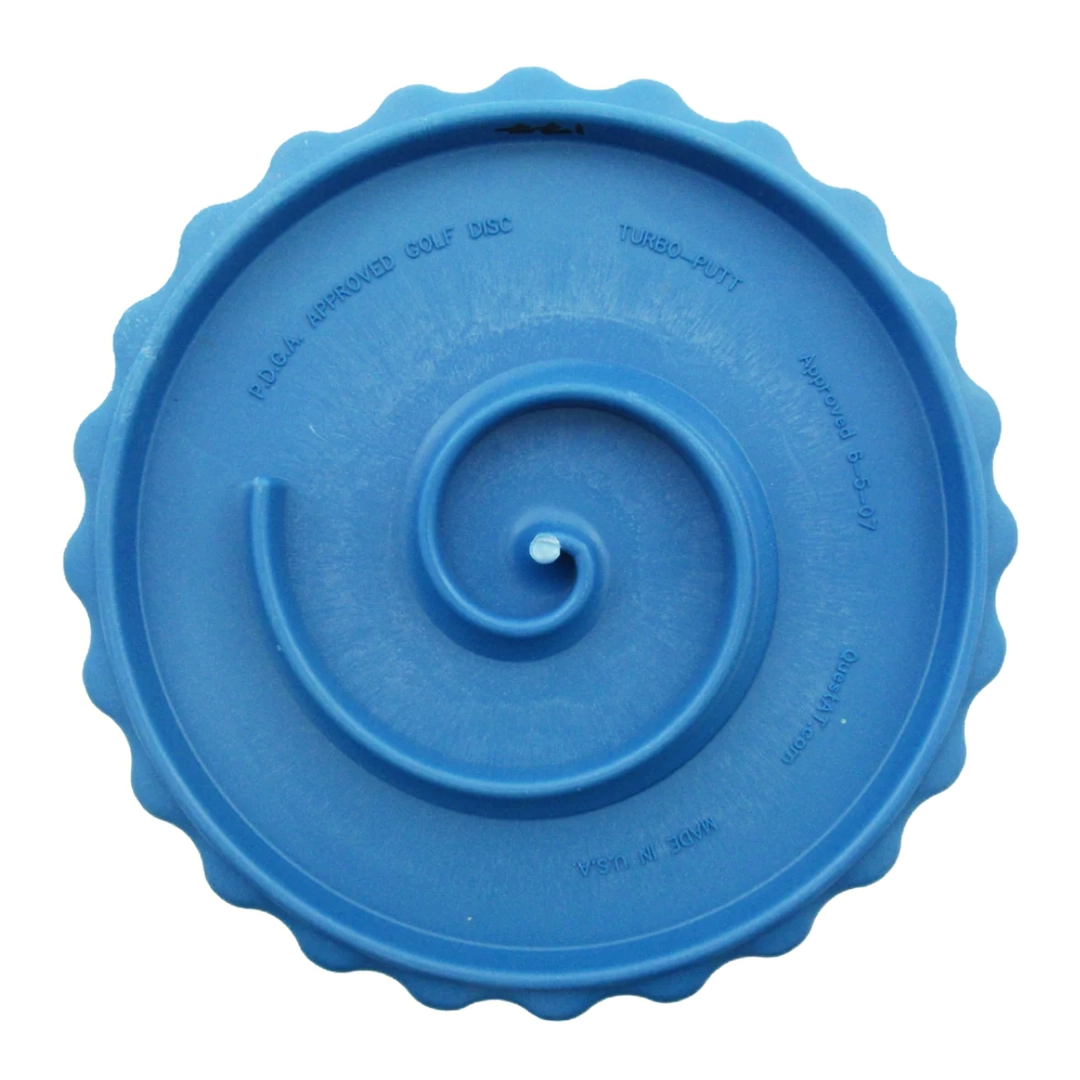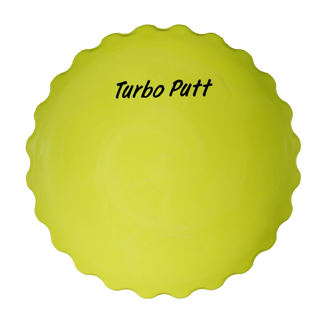 Manufactured By Gotta Go Gotta Throw: Introducing the return of the original Turbo Putt from Quest Applied Technologies! The Turbo Putt is a very unique disc mold that has notches all around the rim and a spiral ridge on the bottom. It is designed for overhand "turbo putting" where the thumb is placed anywhere along the spiral ridge and the fingers are fanned into the grooves along the rim of the disc for launching the disc at the basket. It has become something of a cult classic disc golf disc, but is not currently PDGA approved for use in sanctioned events. It was originally approved in 2007, but had its approval rescinded the next year because it was argued that the disc did not have "radial symmetry." It is definitely not like any other disc on the market and is sure to get attention whenever it is used in recreational play. The PDGA updated their qualifications and definitions for a "Golf Disc" because of this specific disc. Do you believe the PDGA should allow this disc back in sanctioned events?