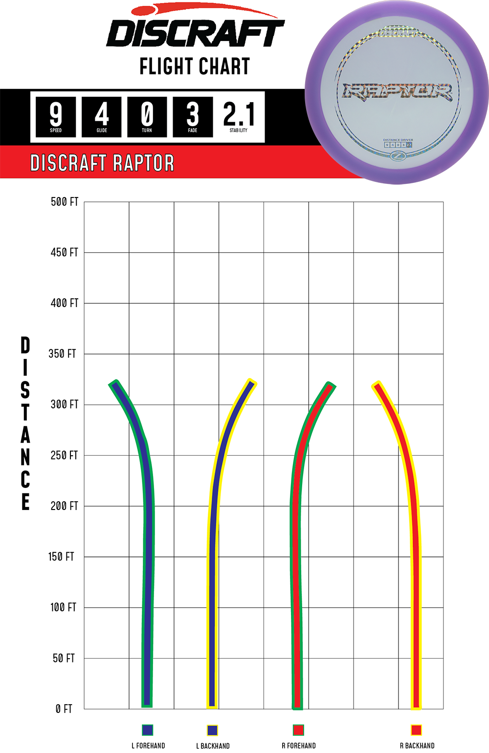 Drive with confidence with the overstable Raptor driver. A staple for forehand and high speed backhand throws, with minimal turn and a powerful ending