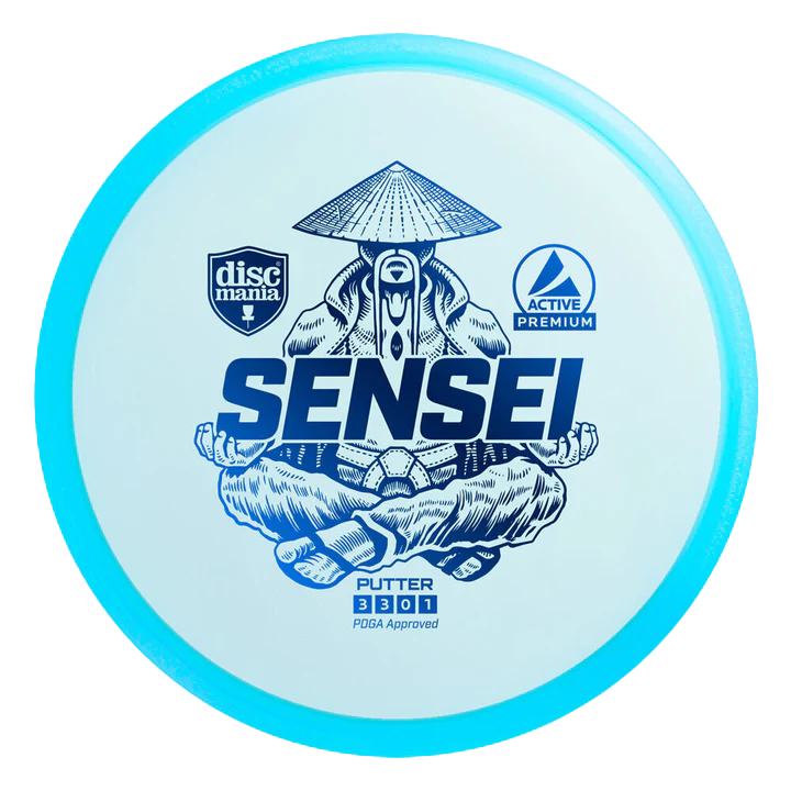 The Sensei is a low profile putter that fits well in any hand size. The disc is designed for all types of approach shots and putts. The flight of this disc is straight in high speeds and it offers a dependable fade as the speed and rotation slows down. Great choice for beginners and more experienced players alike!