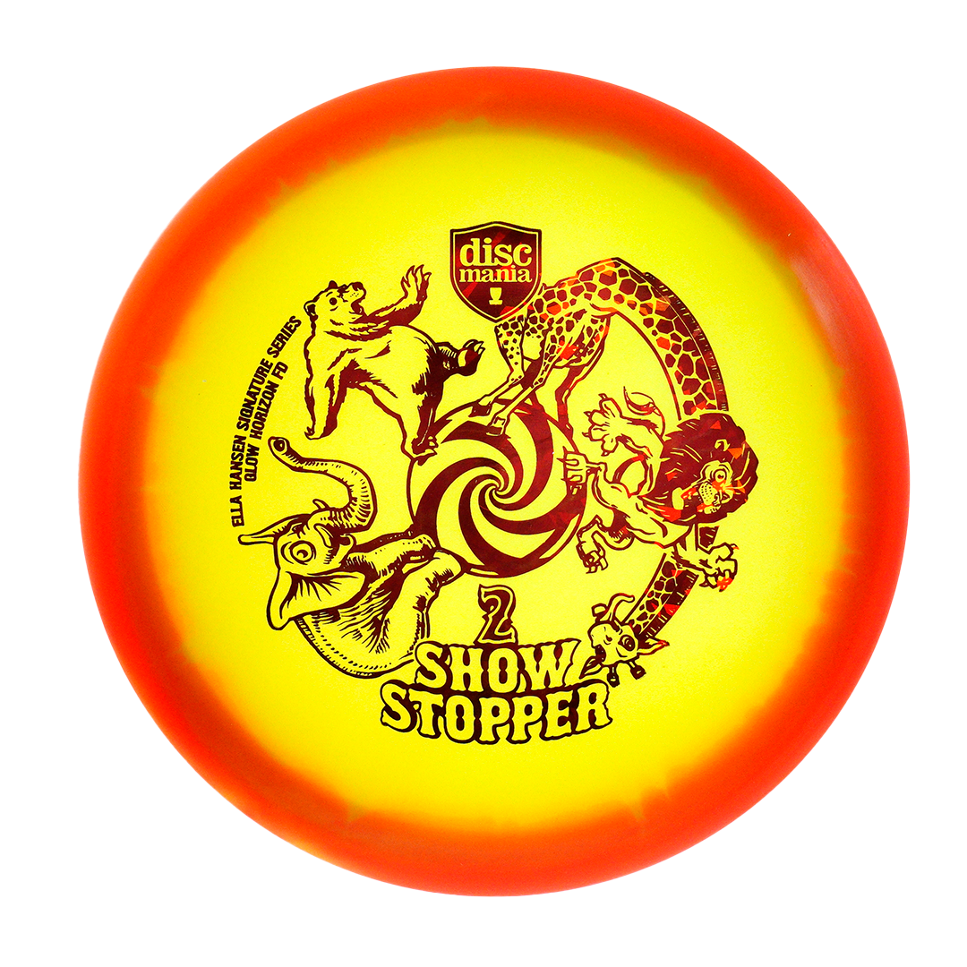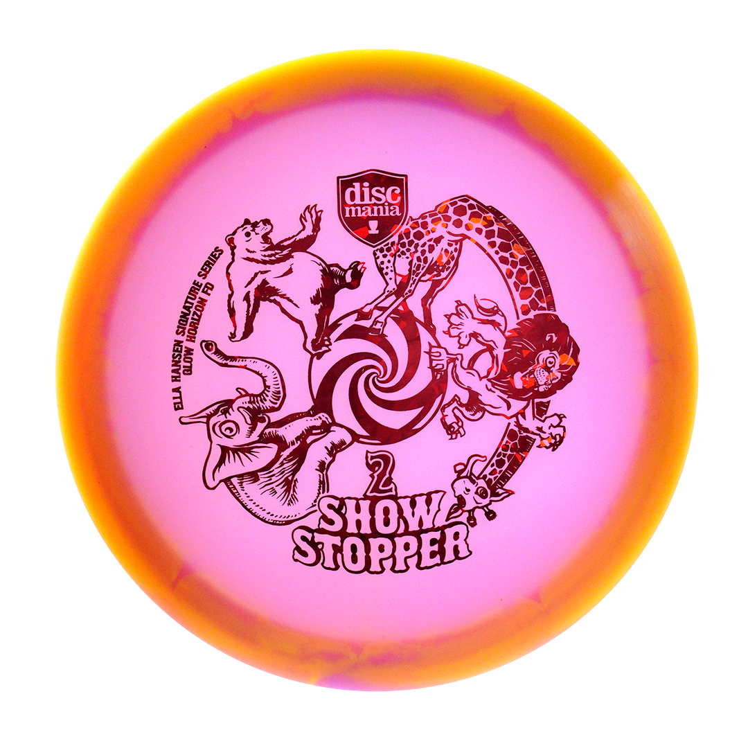 About Horizon plastic: Horizon plastic is a combo containing two strikingly different color variations. Discmania's experts behind the machines have taken careful measures to make sure that each interior and exterior color way matches perfectly. Combined with Signature Series artwork, Show Stopper 2 gives players striking aesthetics to match excellent performance.