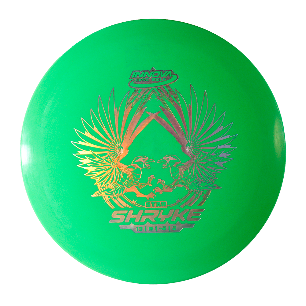 The Shryke is an easy to throw, very long range driver for a wide variety of players. A mild high speed turn puts the Shryke in glide mode, which along with its high aerodynamic speed, give it incredible distance. The low speed fade is also mild, which makes it easy to keep on the fairway. The Shryke is similar to our popular Tern but faster and slightly more high speed stable.
