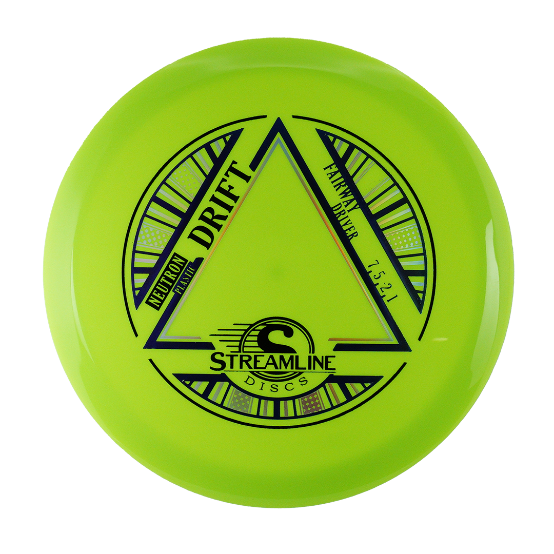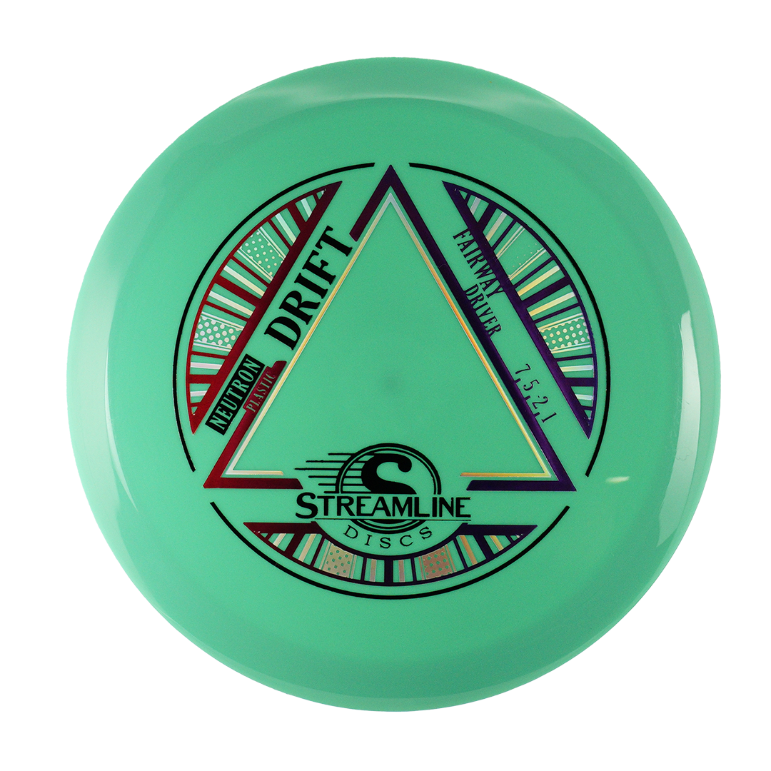 The Drift is designed for laser straight lines ending with a gentle fade and an exceptional amount of glide, providing easy distance with this highly versatile driver. The Drift has a modest rim size, a slightly domed profile, and an easily activated turn for hyzer-flips or big turnover shots. The Drift will make its grand debut in Neutron Plastic, pairing perfectly with its bright opaque colors, durability, and grip. This Speed 7 driver is the first fairway driver in the Streamline fleet and continues the trend of stunning triple-foil stock stamps.